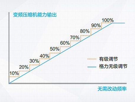 輸出能力無級調(diào)節(jié),直流變頻壓縮機能夠在20Hz~120Hz范圍內(nèi)做到數(shù)字化無級能量調(diào)節(jié)。