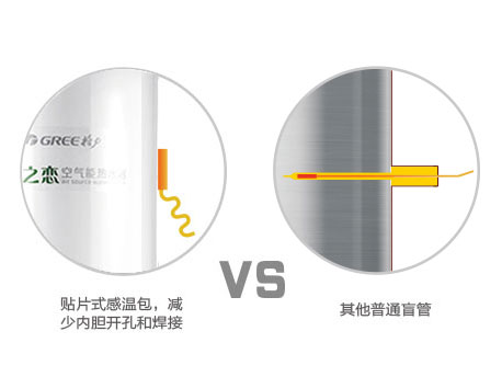 采用貼片感溫包,可減少內(nèi)膽體開孔,減少焊點(diǎn),同時(shí)取消感溫盲管,減少感溫盲管腐蝕泄漏的隱患;工藝性更好,更耐用。
